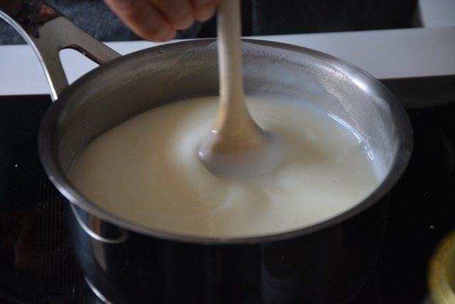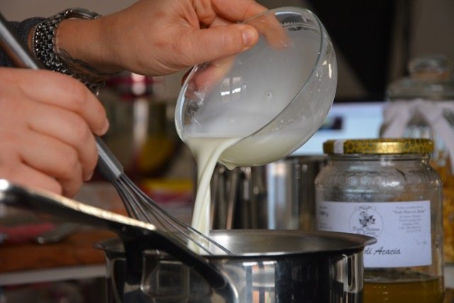 Unire il mix di latte e amido al latte e miele.