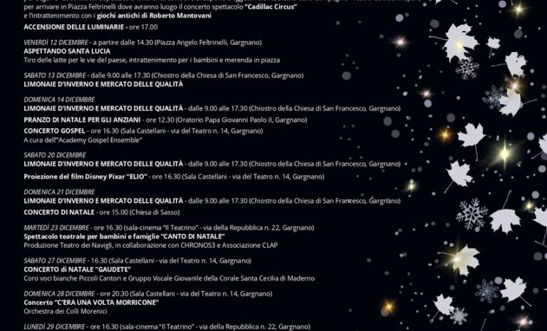 📅 QUANDO: 04/01/2026 – 06/01/2026 📍 DOVE: Gargnano, Lungolago Zanardelli 52 (Vedi su Mappa) 💰 INGRESSO: Vedi Info 🏢 ORGANIZZAZIONE: Comune di Gargnano