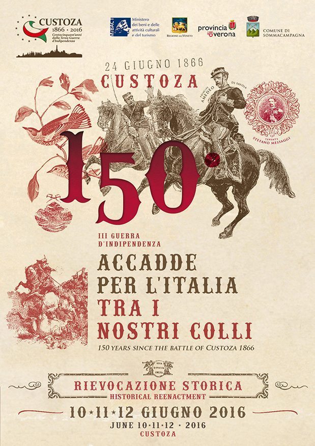 “Accadde per l’Italia tra i nostri Colli”, è con questa frase, che a Sommacampagna nelle colline Moreniche del Custoza, si apprestano a commemorare i 150 anni della battaglia che decise le sorti della Terza Guerra d’Indipendenza combattuta il 24 Giugno del 1866 a Custoza.